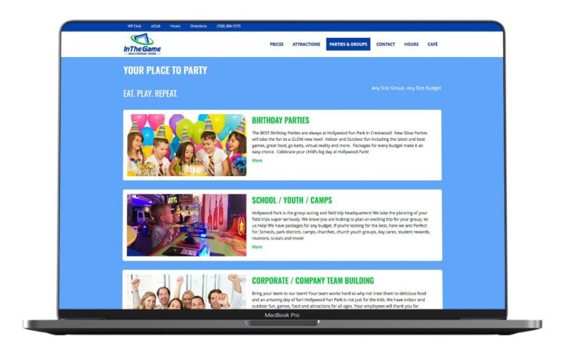 The website updates made the website much more user-friendly. The site itself was built to reduce website management from the center managers so that FEG can do the bulk of the management in house. This reduced the permissions issues that Hollywood Fun Park was having previously. The website is now sleek and new and invites potential customers to spend more time exploring the site and booking parties or days out to Hollywood Fun Park.